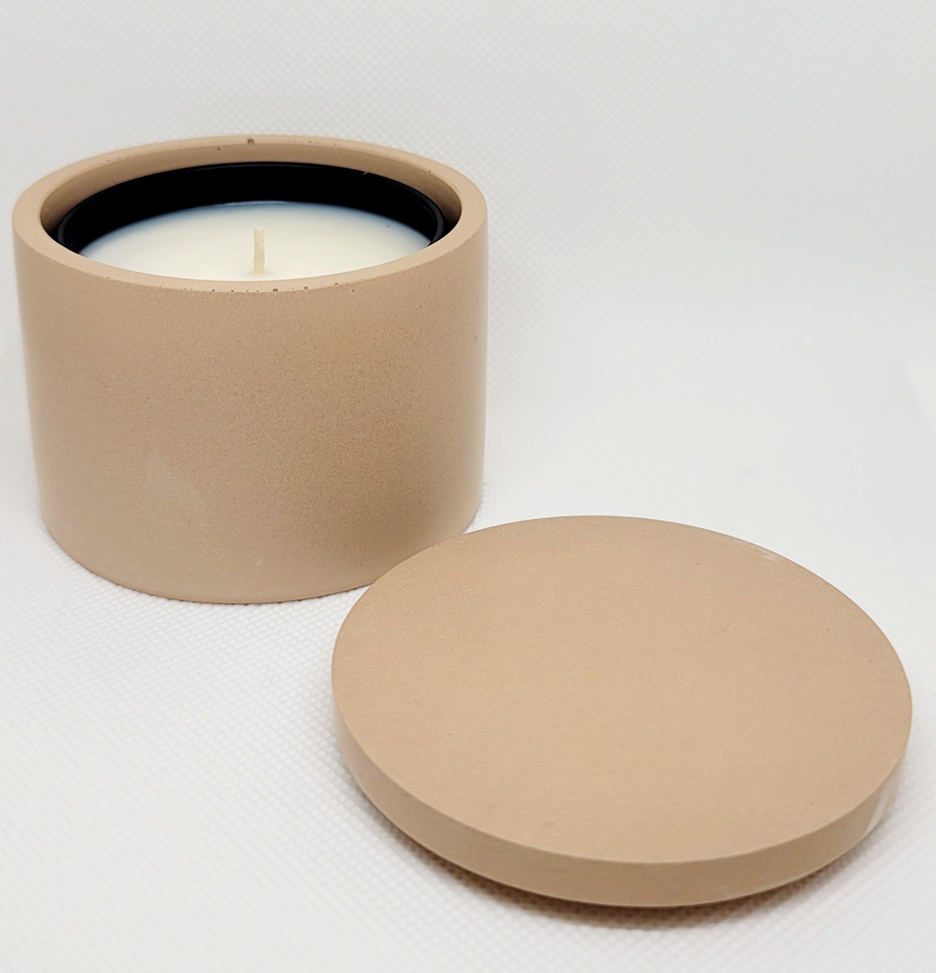 Our candle tins do not have rubber feet so they can fit in our concrete containers. Should you light the candle without the concrete container, a coaster or heat resistant surface is required. 3.4 oz Black Tin Only - Concrete container not included